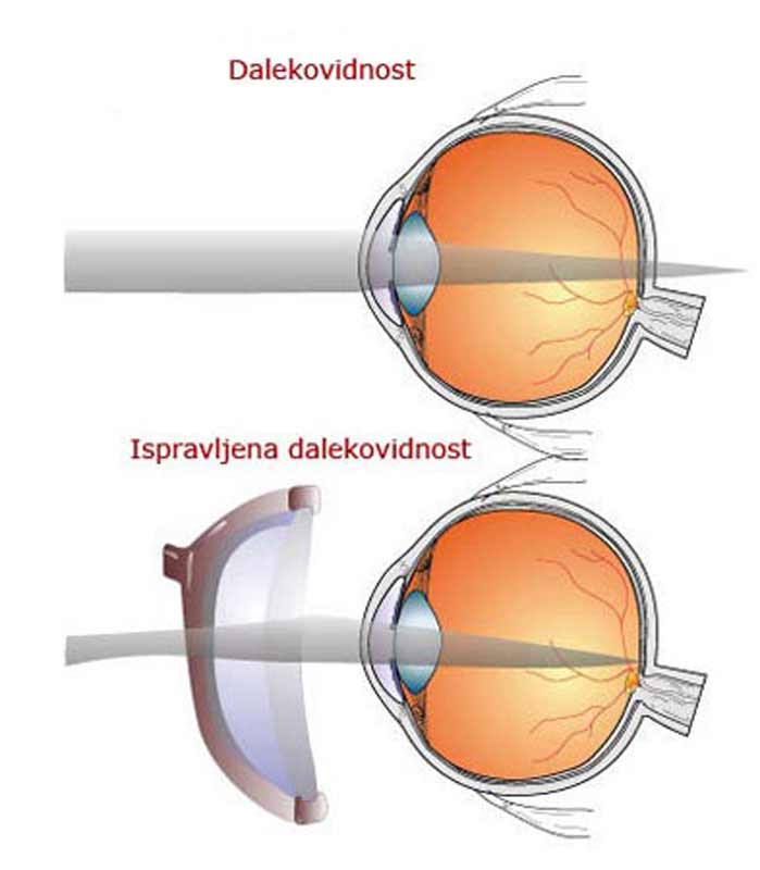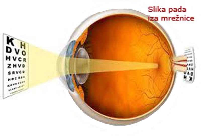 Uzrok hiperopije je uglavnom "kratko oko", što znači da udaljenost između rožnice i mrežnice nije dovoljno velika. U takvim slučajevima slika se formira iza mrežnice. To znači da hiperopi bolje vide udaljene predmete nego one bliže. Jasan vid se može postići koristeći prisilnu akomodaciju što je dugoročno zamorno. Ovaj problem često je pračen osjećajem napetog, umornog oka.